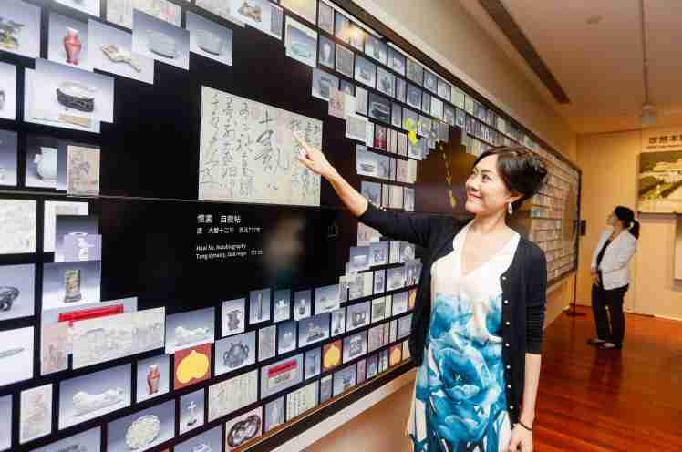 互动导览墙的设计灵感源自故宫多宝格文物,,,具直觉友善的使用接口与红外线感应设计,,,,可让多人同时透过点选、、、拖拉、、、滑动等互动手势,,,简单饱览300多件故宫文物精彩的图像、、、影片、、动画、、360度环物模型及书法释文,,整合在线线下体验,,增添参观者导览互动体验享受。。。