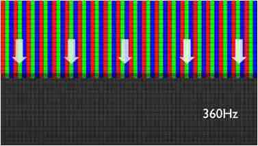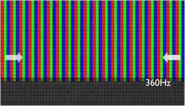 传统液晶驱动是从左到右单向进行,,,在画面更新速度愈来越愈快的情况下,,,,位于驱动线路末端的右下角区域,,,画素的闸极来不及在短时间内获得足够电压,,无法显示出正确的颜色资讯。。。。 |
